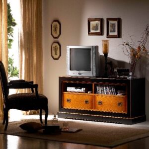 Consola em cerejeira com 2 gaveta e porta deslizante, com 2 prateleiras no interior