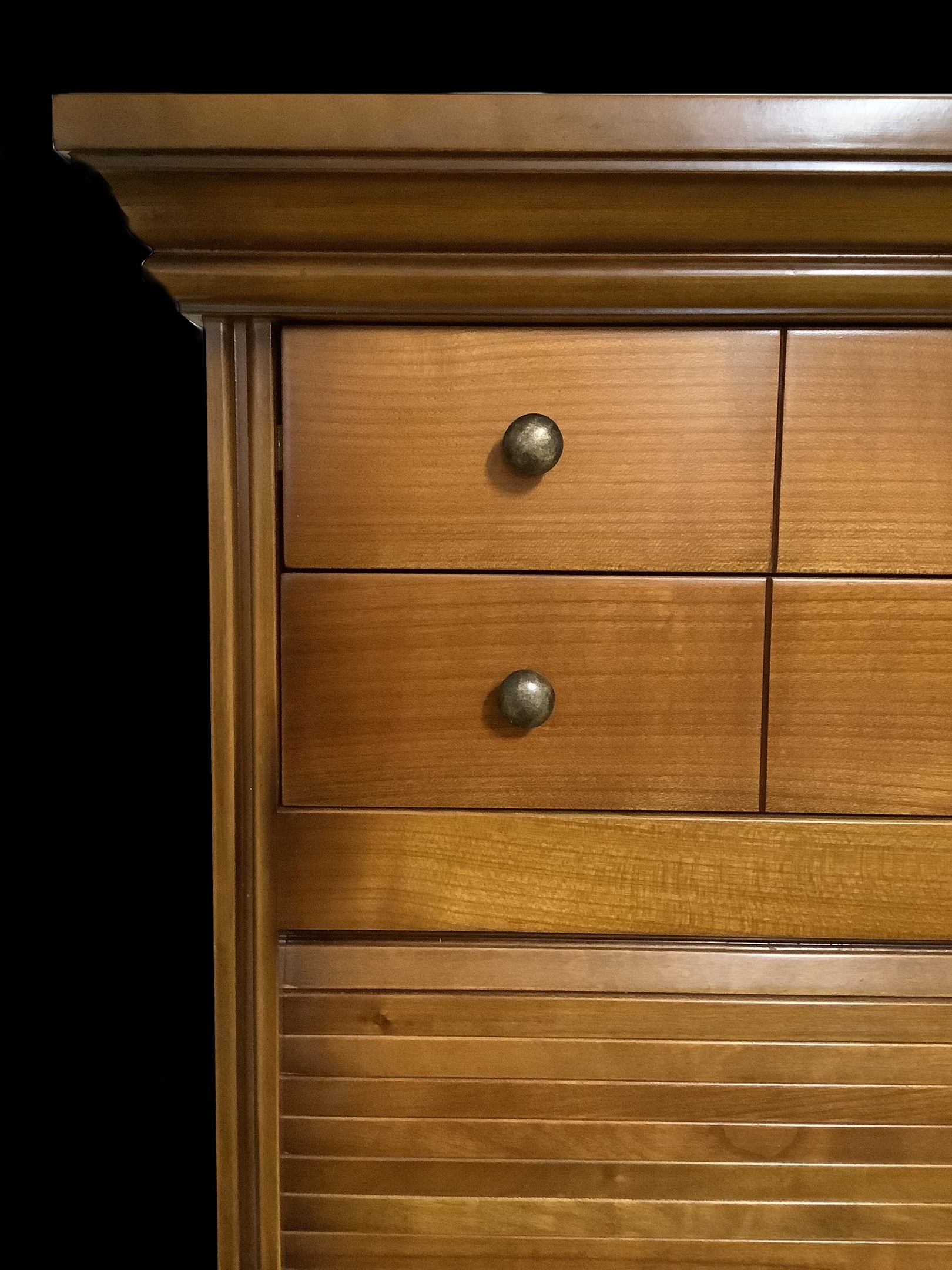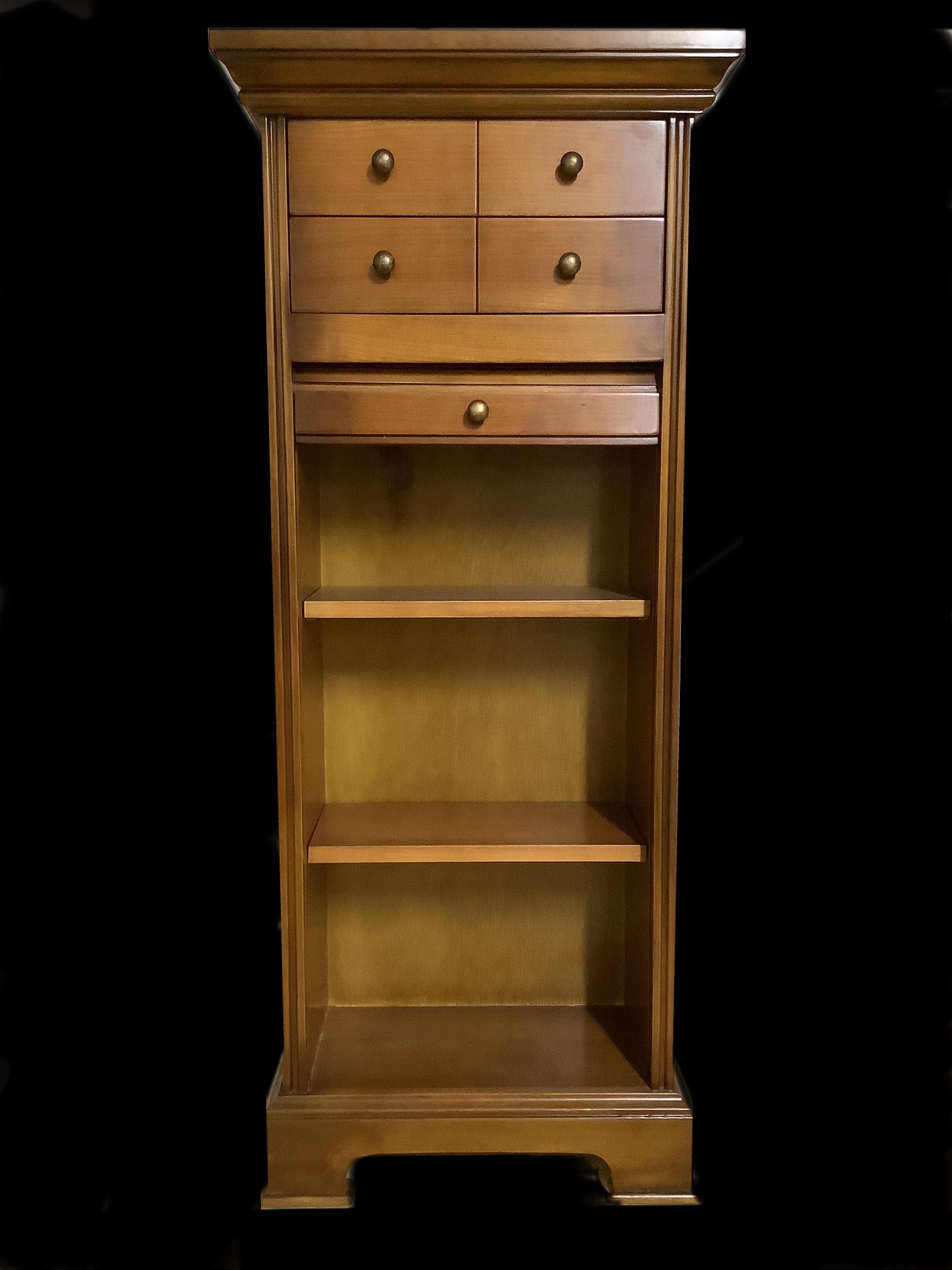 Consola em cerejeira com 2 gaveta e porta deslizante, com 2 prateleiras no interior